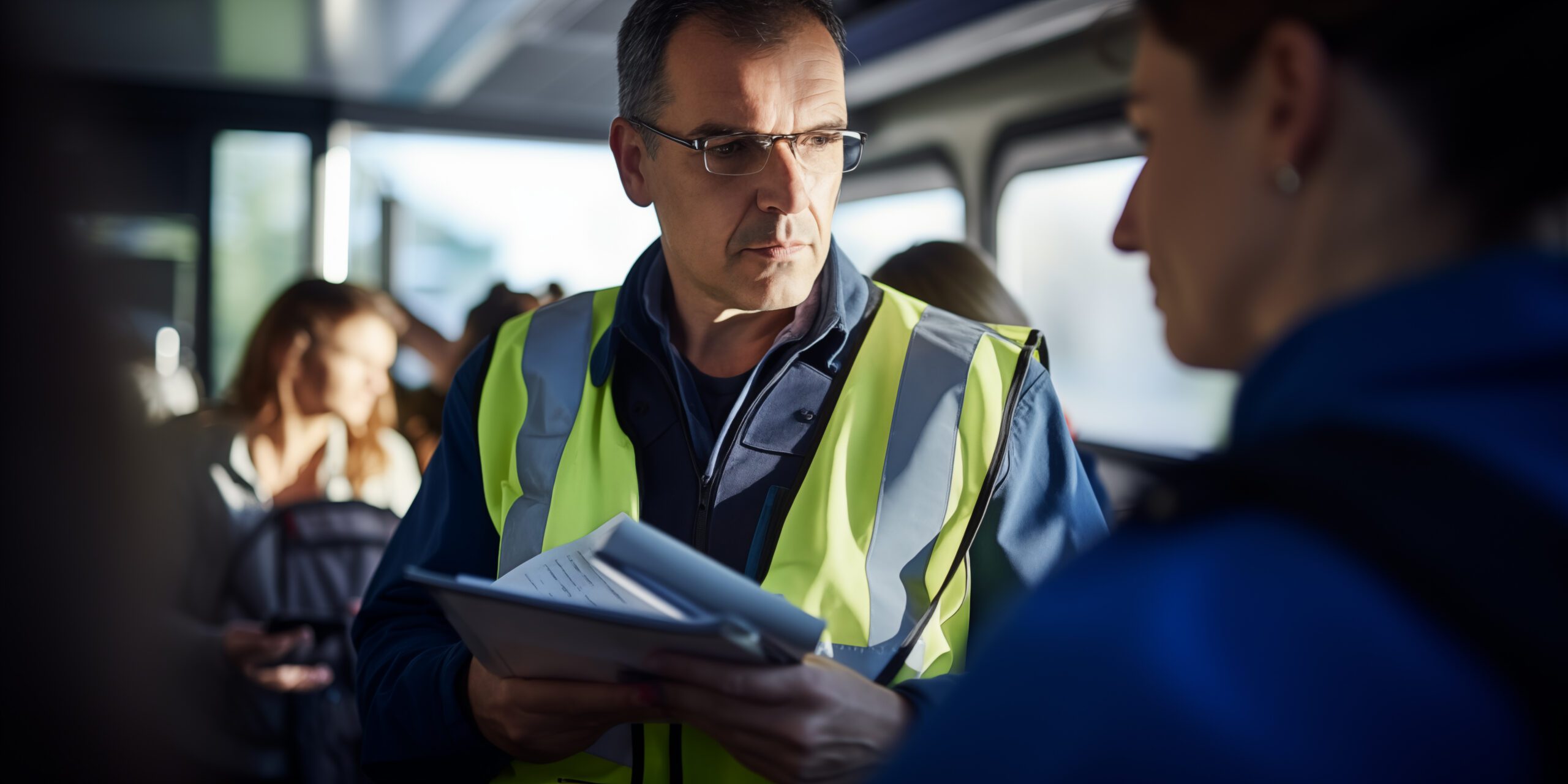 Fahrscheinkontrolleur kontrolliert Fahrgäste im öffentlichen Verkehr